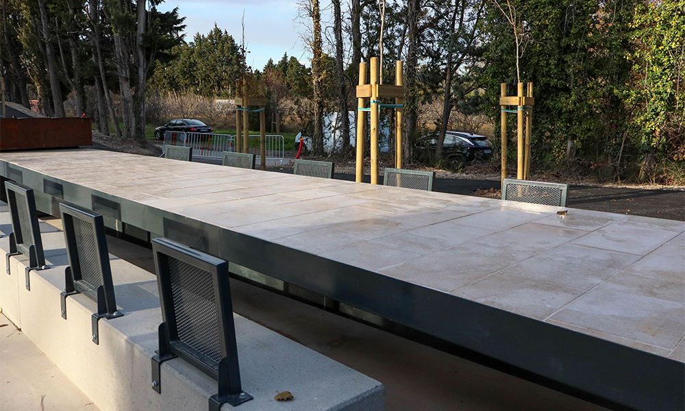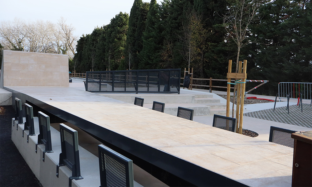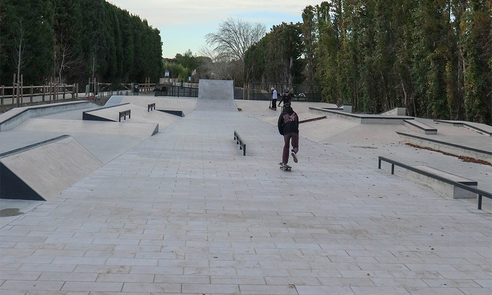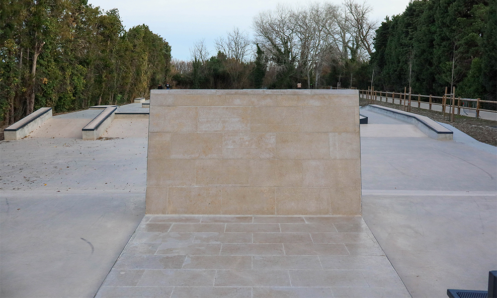 Aménagement en pierre calcaire Beige Montdoré du skatepark de Noves